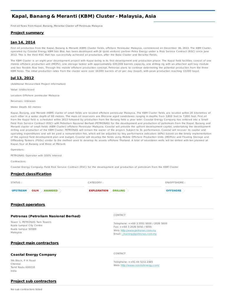 Kapal Banang And Meranti Kbm Cluster Resource Extraction Industries