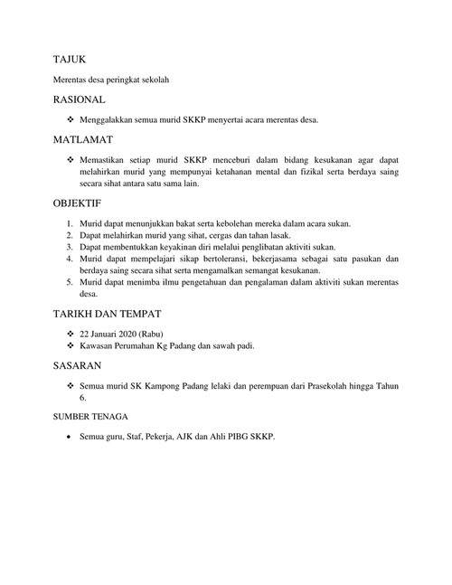 Kertas Kerja Kejohanan Merentas Desa Sdar 2018 Pages 1 12 Text Version Anyflip