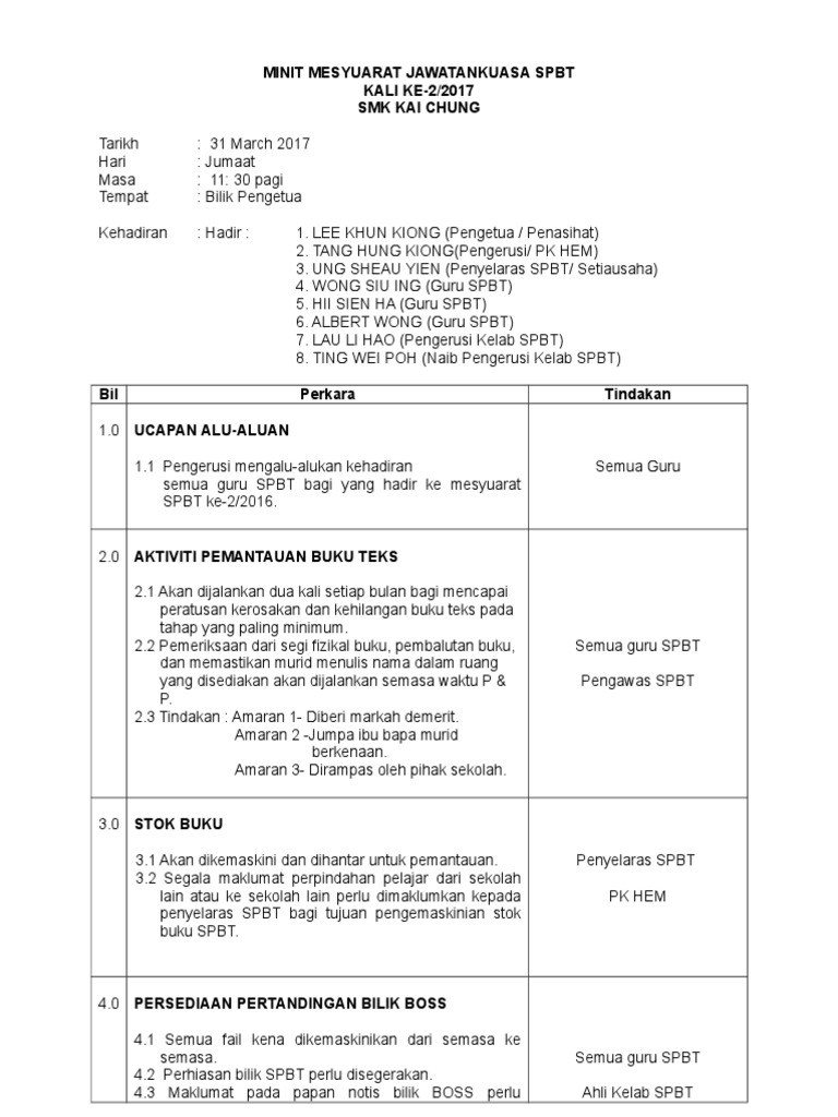Minit Mesyuarat Jpms Kali Kedua 2019 Pages 1 5 Text Version Anyflip