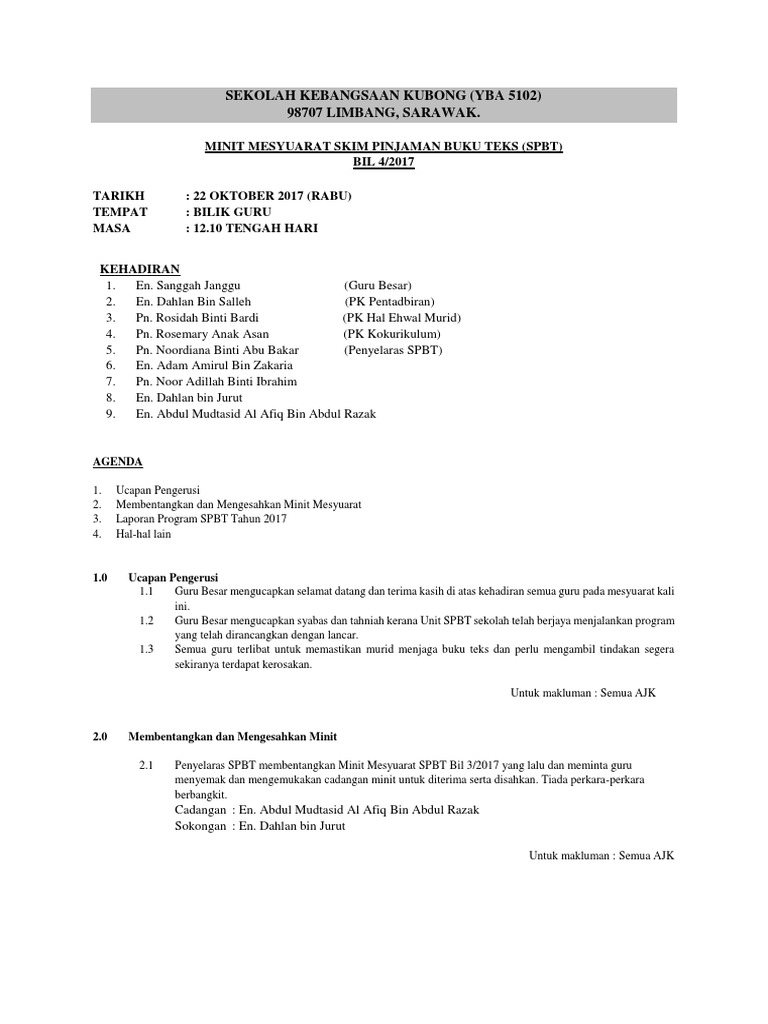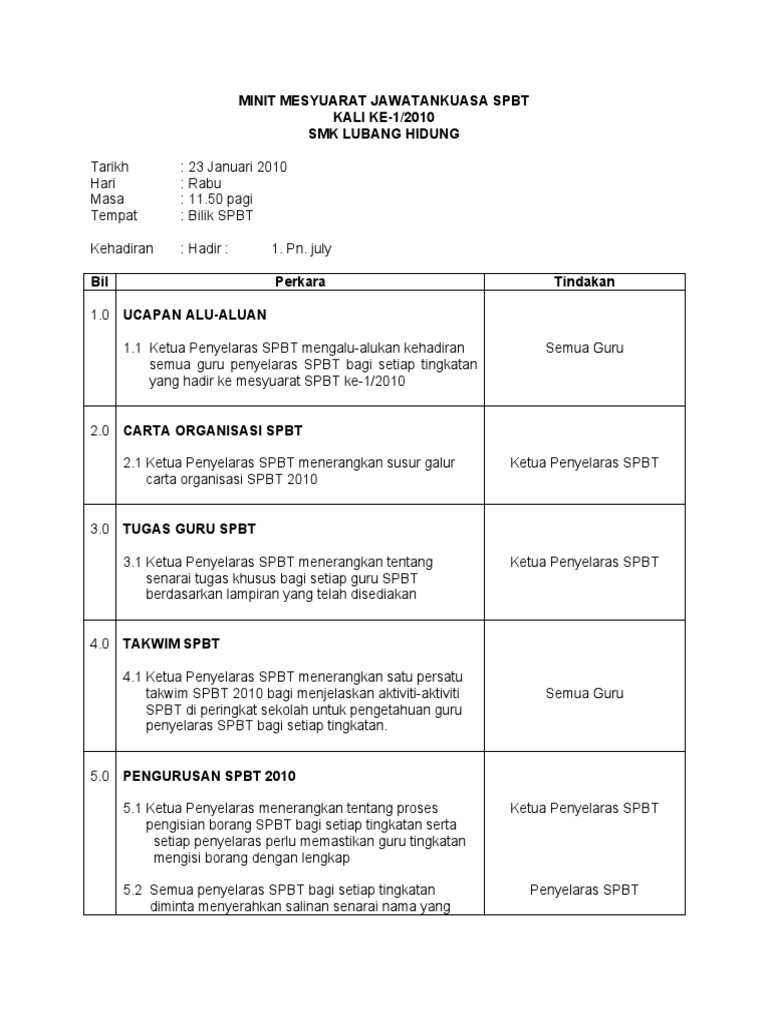 Contoh Minit Mesyuarat Spbt